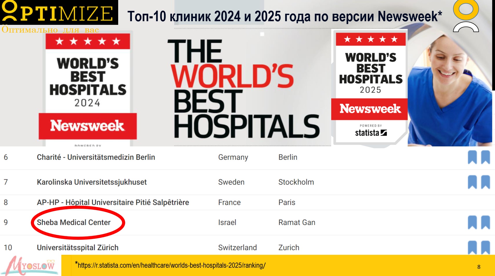Рейтинг Лучшие больницы мира основан на статистических данных собранных глобальной консалтинговой компанией Statista (Статиста Р) в сотрудничестве с Newsweek (Ньюсвик)